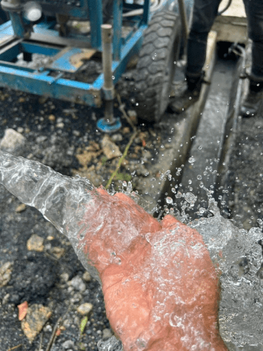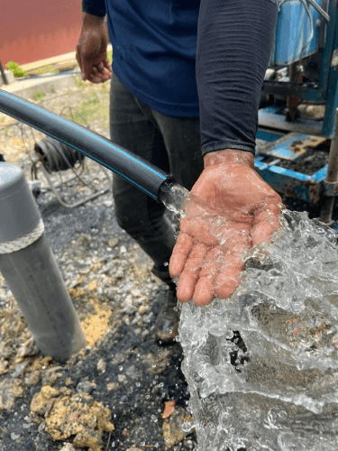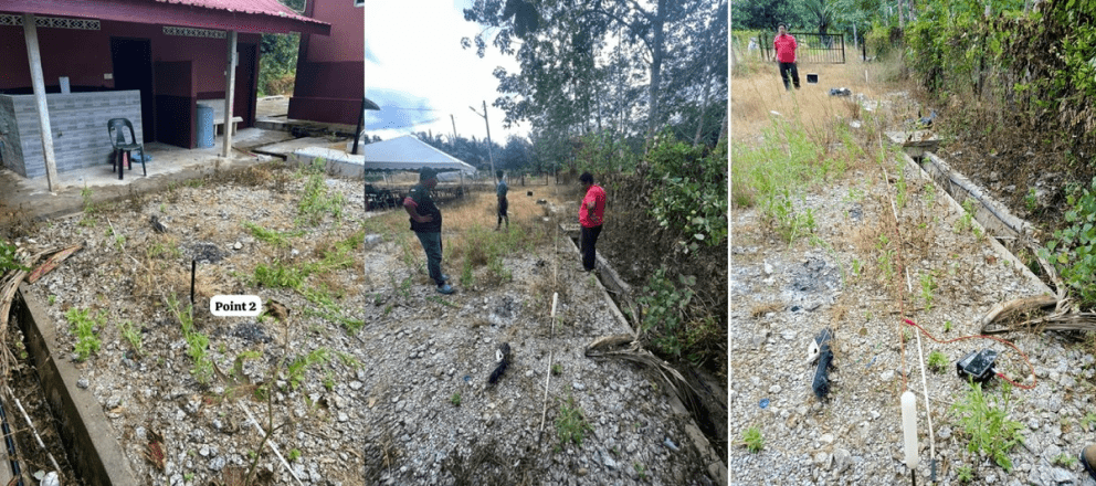 bersama kontraktor yang dilantik untuk sesi geo-maping bagi memastikan kawasan yang tepat untuk melakukan penggalian dan membina Tube Well di kawasan surau tersebut.